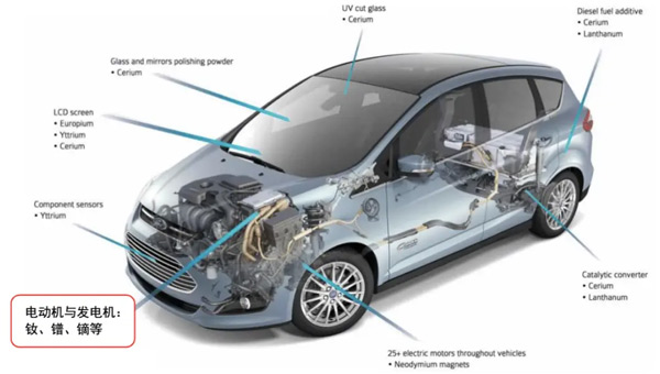 汽車(chē)產(chǎn)業(yè)方面,一臺新能源電動(dòng)小轎車(chē)至少用到十公斤稀土。