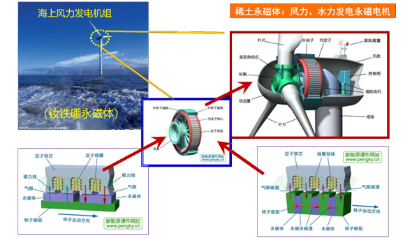 近些年,由于碳達峰碳中和目標的設立,稀土材料在新能源領(lǐng)域有了突飛猛進(jìn)的發(fā)展。比如大家目前隨處可見(jiàn)的風(fēng)力發(fā)電機,一個(gè)兩兆瓦的風(fēng)力發(fā)電機平均就要用到半噸稀土。