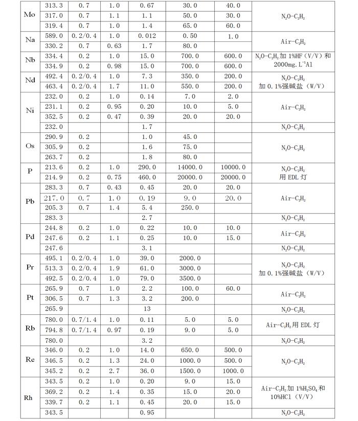 ⑶ 選擇分析線(xiàn),應當避免可能的譜線(xiàn)干擾。當分析線(xiàn)附近的其他非分析線(xiàn)進(jìn)入光譜帶寬內時(shí),將使靈敏度降低和工作曲線(xiàn)彎曲。例如Ni232.0nm分析線(xiàn)附近有幾條非分析線(xiàn)和吸收很弱的譜線(xiàn)(如Ni231.98nm、Ni232.14nm、Ni231.6nm),即使使用很窄的光譜通帶,也難于將它們完全分開(kāi)。因此有時(shí)寧可犧牲一些靈敏度而選用吸收系數稍低的Ni341.48nm作分析線(xiàn)。分析線(xiàn)的選擇,還會(huì )受到背景吸收的限制。例如,測定鉛時(shí),用Pb217.0nm靈敏分析線(xiàn)時(shí),背景吸收較大。一般多選用次靈敏線(xiàn)Pb283.3nm作分析線(xiàn)。當靈敏的分析線(xiàn)受到較大干擾,難于保證測定的準確度,而寧愿采用次靈敏線(xiàn)以避免干擾。